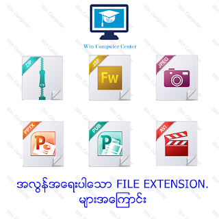 ကျွန်တော် ပြောချင်တာက file extension ကို ကစားနည်းလေးပါ။ အလွန် အသုံးဝင်ပါတယ်။ Folder lock, Windows lock တွေ သုံးစရာ မလိုတော့ဘူး။ ကိုယ်ဝှက်ချင်တာ ဖွင့်မကြည့်စေချင်တာတွေကို ပုံဖျက် ပုန်းရှောင်နည်းပေါ့။ အိုစကေ ဇာတ်လမ်းမစခင် file type လေး အချို့နဲ့ မိတ်ဆက်ပေးဖို့ လိုမယ်ထင်တယ်။ ကွန်ပျူတာဖြစ်ဖြစ် ဖုန်းဖြစ်ဖြစ် အသုံးပြုသူတိုင်း သိထားသင့်တာက file format ပါ။ ဓါတ်ပုံတွေဆိုရင် အသုံးအများဆုံးက .jpg or .JPEG, .PNG, .BMP. ဗွီဒီယို တွေဆိုရင် အသုံးများတာတွေက .mp4, .avi, .3gp and .MPEG စသဖြင့်ပေါ့။ အသံဖိုင်တွေဆိုရင် .mp3, .WMA, .ogg စသဖြင့်သုံးကြပါတယ်။ ဒါက လူသိများ အသုံးများတာလေးတွေ ဥပမာ ပြောတာ။ အိုကေ အလုပ်စမယ်။